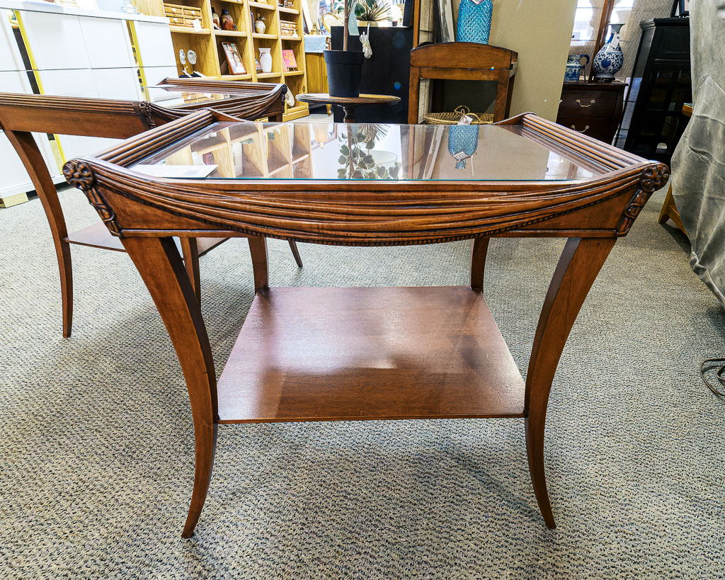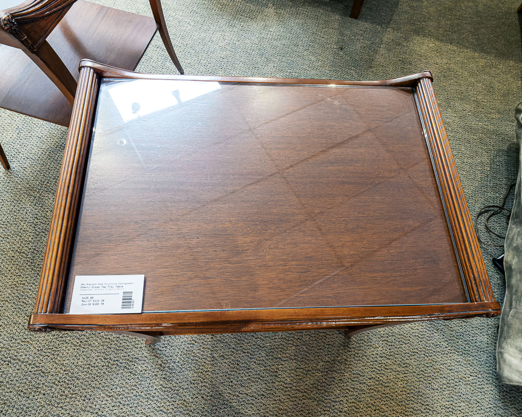 Cherry Glass Top Tray Table